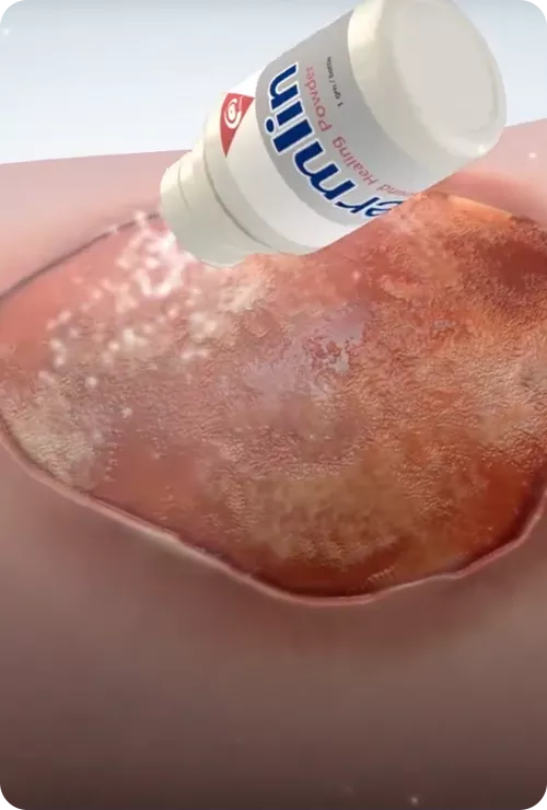 Dermlin powder spray applied once every 1-2 days, based on wound condition
